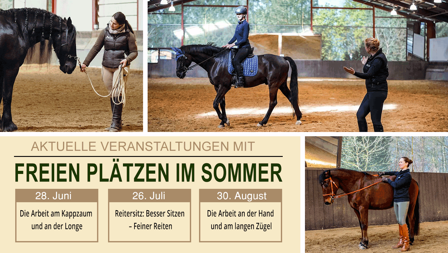Wahrnehmen, wie die Atmung ein Pferd aufrichten kann, wie die Hüfte locker in einer gleichmäßigen Piaffe schwingt oder wie erhaben eine Galopppirouette sein kann – das und vieles mehr können Sie bei uns erfahren.